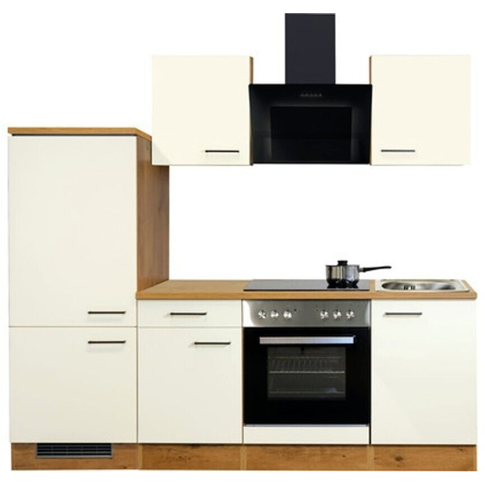Produktinformationen "Flex-Well - Vintea 220 cm - Miniküche mit Elektrogerät (weiß/natur, inkl. Schublade, Unterbauschrank, Hängeschrank, Spüle, Kühlschrank, Backofen, Dunstabzugshaube, Kochfeld)"