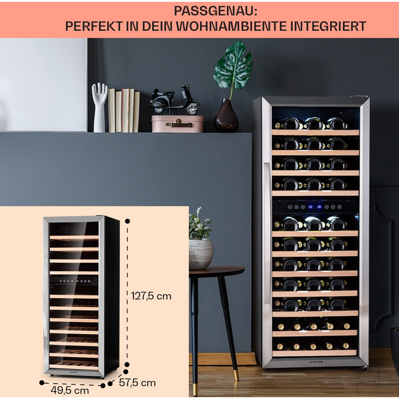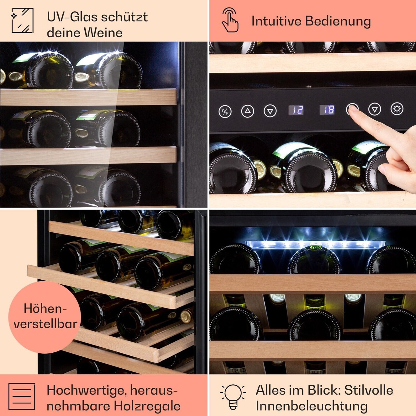 Produktinformationen "Klarstein - Vinamour 73 Duo (schwarz, freistehend) - Weintemperierschrank mit LCD-Display und Holzlagerböden - für 73 Flaschen"