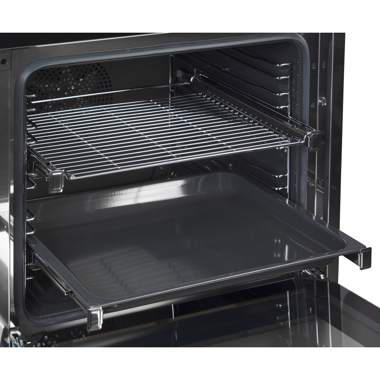 Das Reinigungssystem Katalyse ermöglicht eine mühelose Reinigung und das Perfect Clean-System lässt Schmutz gar nicht erst anhaften. Der Herd ist zudem mit einem komfortablen Teleskopauszug und einer Garraumbeleuchtung ausgestattet, die Ihnen den perfekten Überblick über Ihre Speisen ermöglicht. Ein Display mit Uhrzeit ergänzt die Funktionen.