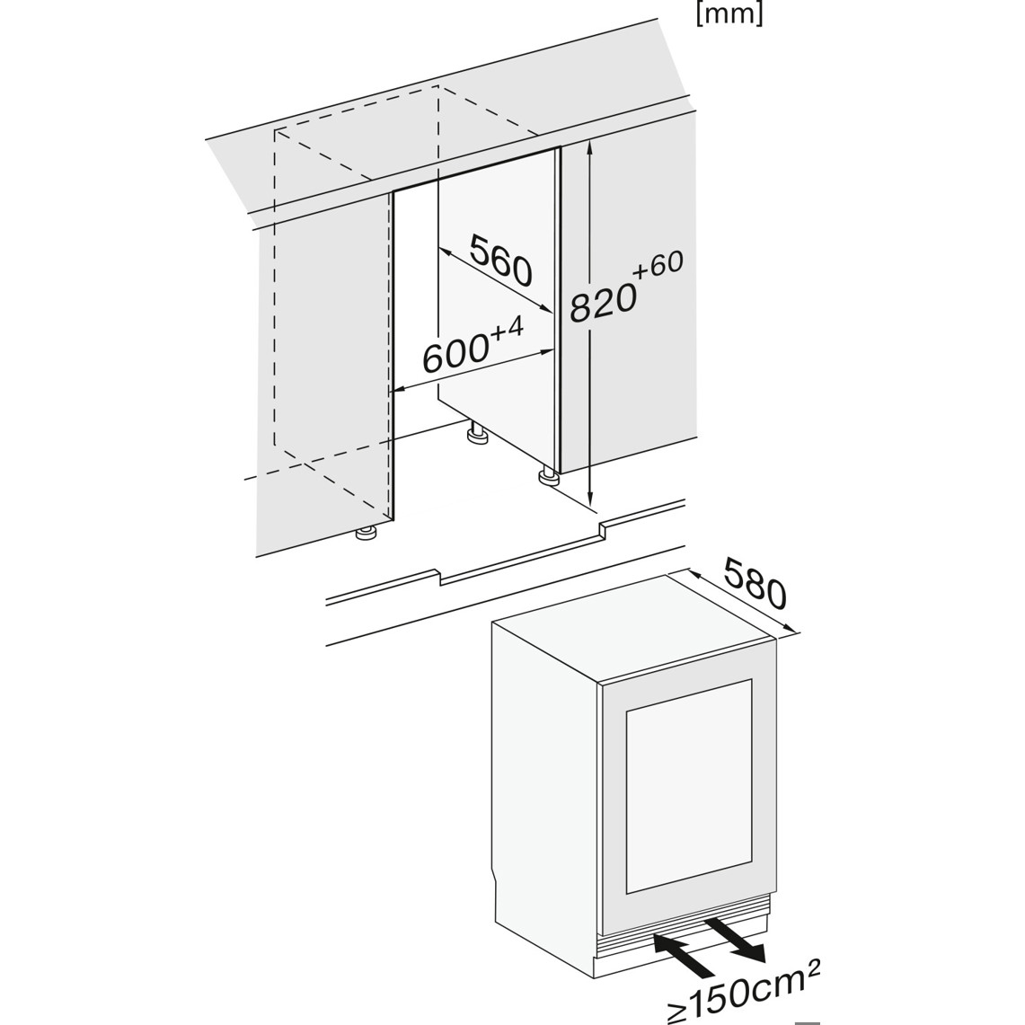 Die Abmessungen des Schranks betragen eine Breite von 59,7 cm und eine Höhe von 81,9 cm, perfekt dimensioniert für Ihr Zuhause. Mit einem Geräuschpegel von nur 36 dB(A) ist er leise im Betrieb und stört nicht Ihre gemütlichen Abende.