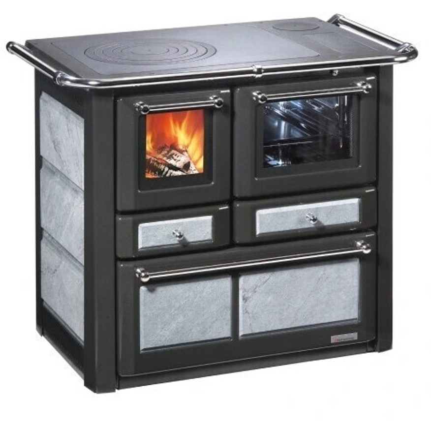 Mit einem Wirkungsgrad von 80,7 % sowie einem Abgasmassenstrom von 6 m(g/s) gehört dieser Holz- und Kohleherd zu den besten seiner Klasse. Der Anschluss für das Rauchrohr hat einen Durchmesser von 130 mm. Der Backofen überzeugt mit einem Volumen von 35 Litern und ist mit zahlreichen nützlichen Ausstattungsmerkmalen wie einem Sichtfenster, Aschebehälter, Rüttelrost, Backblech und Thermometer ausgestattet. Zudem umfasst das Zubehör einen Holz-/Kohlewagen, eine Herdstange, ein Backrost und einen Schürhaken, um Ihnen das Kochen und die Nutzung so angenehm wie möglich zu gestalten.